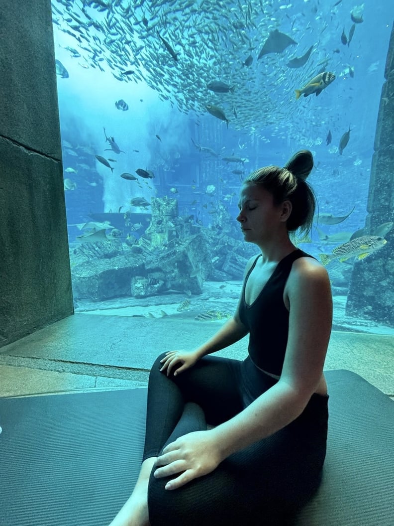"How do you even do yoga underwater?" my boyfriend asked as we walked to the Lost Chambers Aquarium located inside Atlantis, The Palm in Dubai. This was a fair question, considering we had just traveled over 20 hours across the world to reach the resort, and our first planned activity was an underwater fitness class.